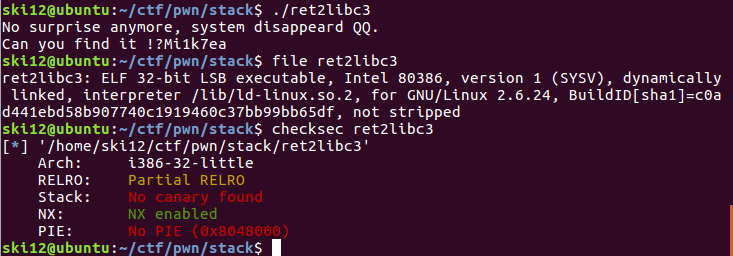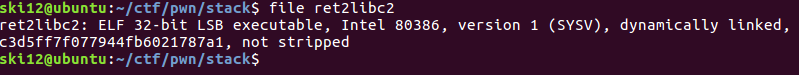 运行程序,提示应用ret2libc,且用file查看是动态链接文件,和libc有关: