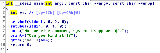 - 程序通过gets()函数获取输入的内容,存在明显的栈溢出漏洞;
