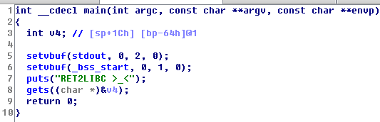 在ret2libc2的基础上,再次将system()函数的地址去掉。此时,我们需要同时找到system())函数地址与”/bin/sh”字符串的地址。