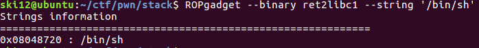 可知“/bin/sh”字符串所在地址为0x08048720。