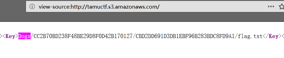 这里涉及到AWS S3 buckets框架的一个知识点,就是访问http://tamuctf.s3-website-us-west-2.amazonaws.com/,也可以通过访问http://tamuctf.s3.amazonaws.com/实现,是一样的。