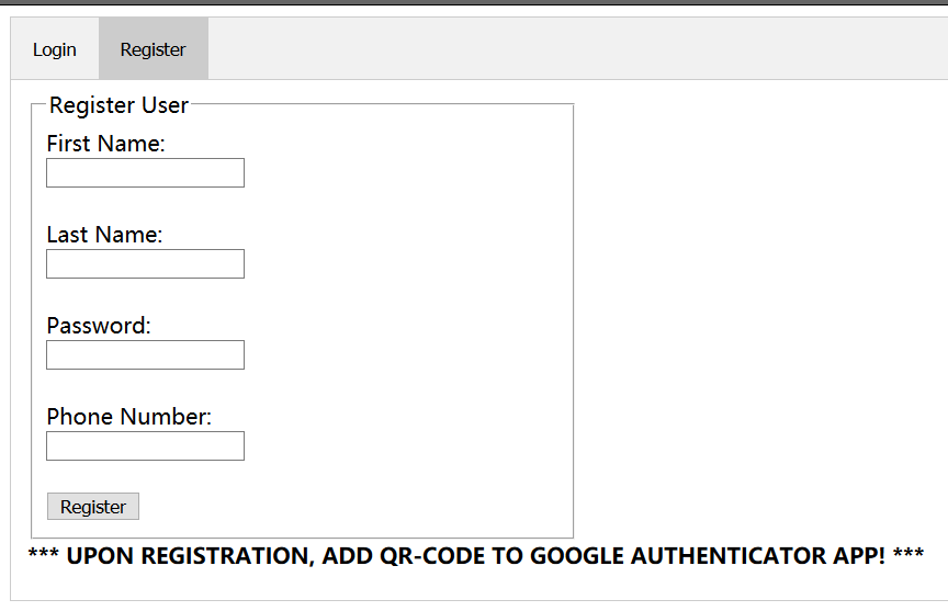 | ... .form .register-form { display: none; } ... <div class="login-page"> <div class="form"> <form class="register-form"> <input type="text" placeholder="name"/> <input type="password" placeholder="password"/> <input type="text" placeholder="email address"/> <button>create</button> </form> <form class="login-form"> <input id="username" type="text" placeholder="username"/> <input id="password" type="password" placeholder="password"/> <button id="submit">login</button> </form> </div> </div>