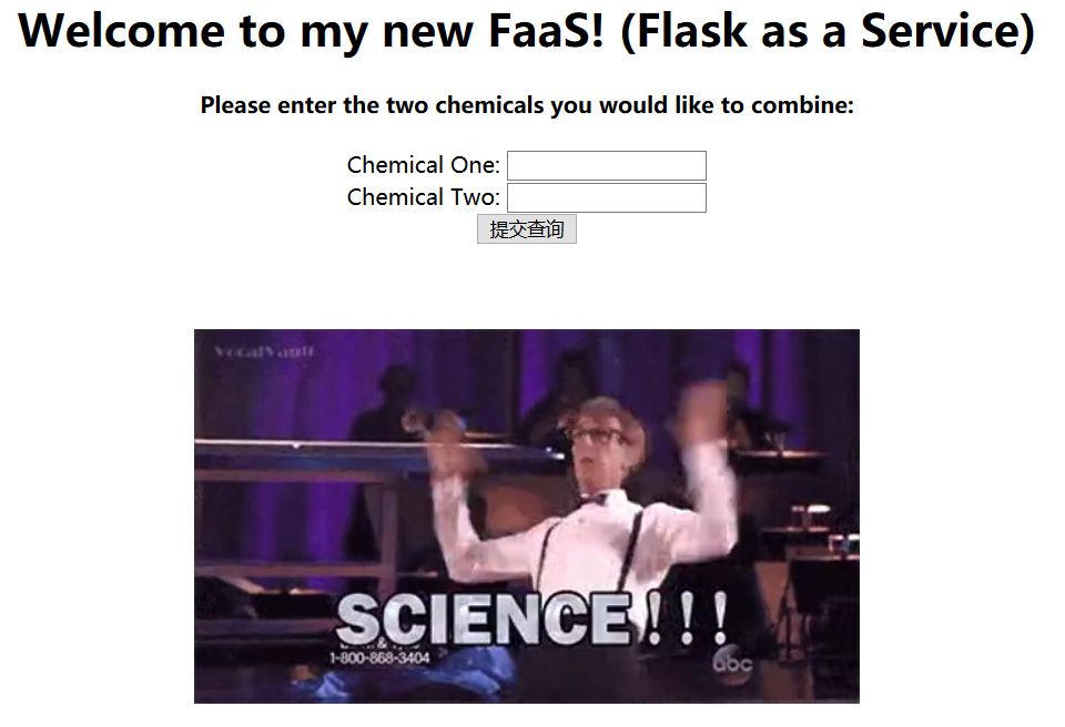 访问题目,提示是Python Flask搭建的Web服务,其中可以输入内容查询,推测是SSTI即服务端模板注入攻击: