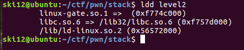 既然开启了NX,那一般是利用ROP绕过,这里用的是ret2libc,因为程序level2调用了libc.so,并且libc.so里保存了大量可利用的函数如system()和/bin/sh,我们如果可以让程序执行system(“/bin/sh”)的话,也可以获取到shell。