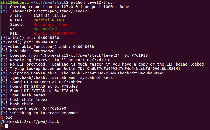 | from pwn import * elf = ELF("./level2") libc = elf.libc