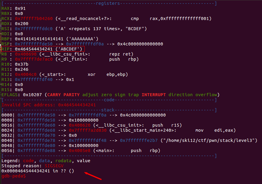 payload除了将p = process(“./level1”)改为p = remote(“127.0.0.1”, 10001)外,ret的地址还会发生改变。解决方法还是采用生成core dump的方案,然后用gdb调试core文件获取返回地址: