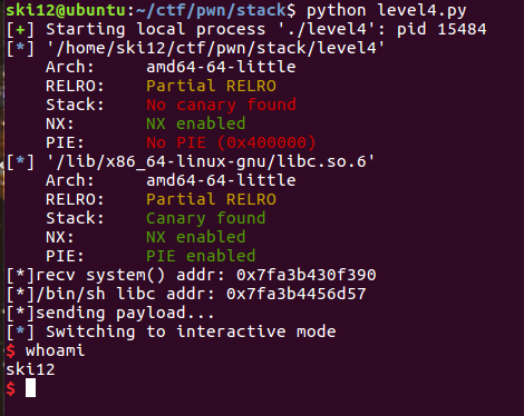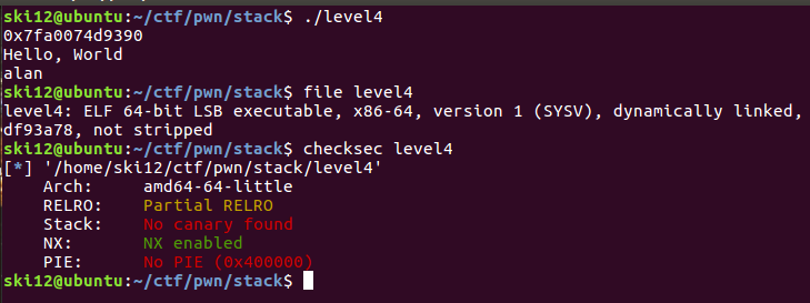 | gcc -fno-stack-protector level4.c -o level4 -ldl