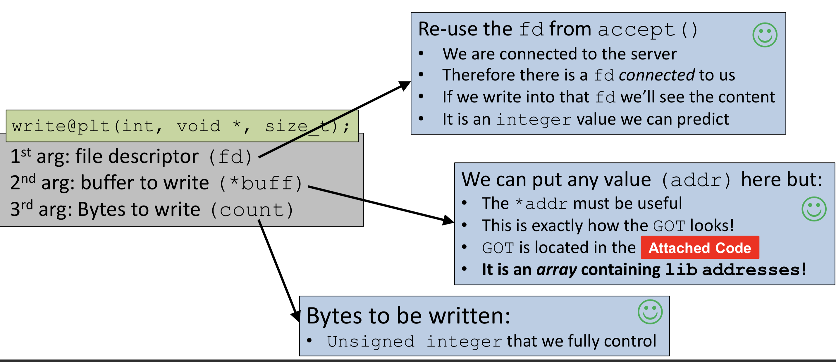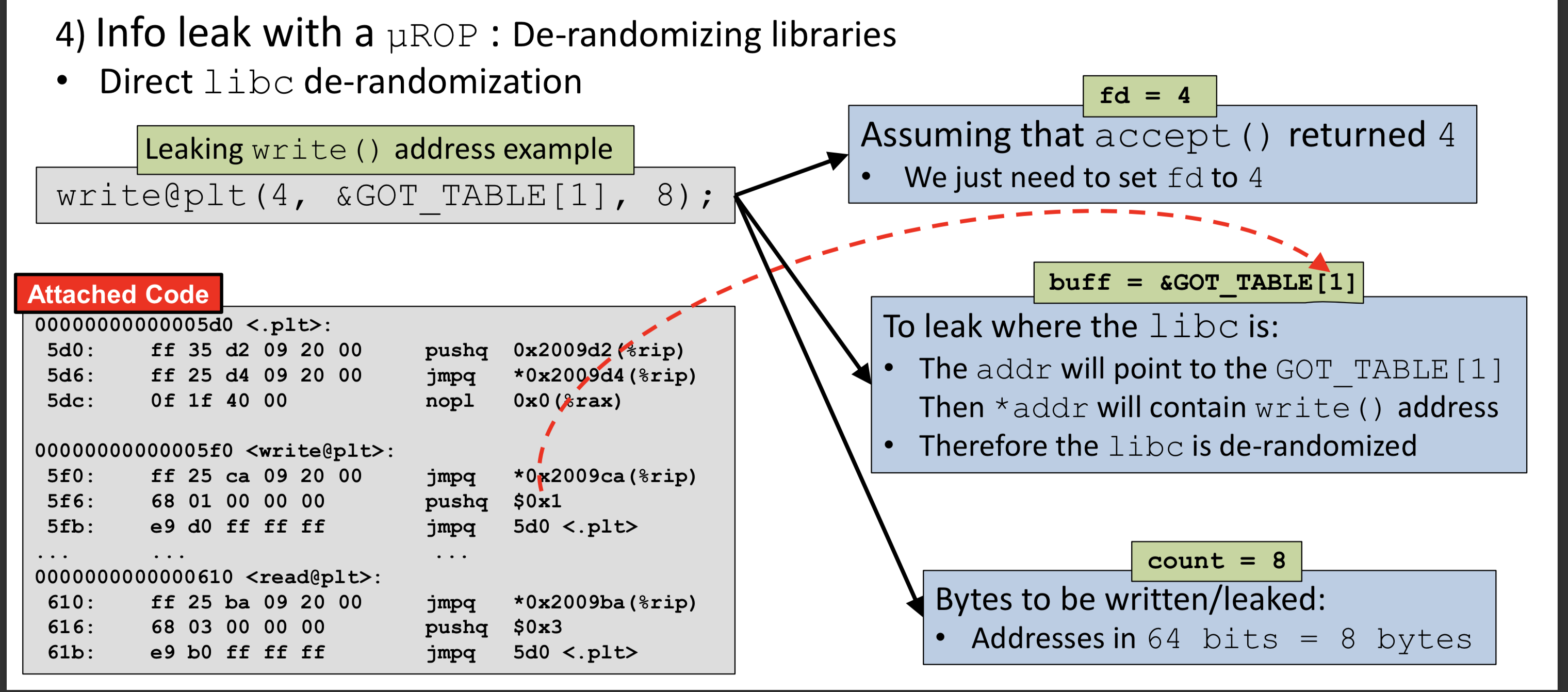 main_addr = elf.symbols["main"] write_got = elf.got["write"] print "[*]main() addr: " + hex(main_addr) print "[*]write() got: " + hex(write_got)
