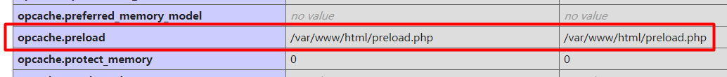 可以看到,该选项设置为preload.php,也就是说服务器在启动时就已经将该文件加载进内存中,后续我们可以直接调用该文件中的类方法即可而无需做多余的操作去加载或包含文件进来。