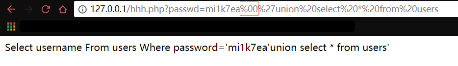 +----+-----------------------+----------+ | id | username | password | +----+-----------------------+----------+ | 3 | 1' union select 1,2,3 | test | +----+-----------------------+----------+