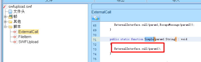 bingo,是ExternalInterface.call()函数,且是第一个参数外部可控,妥妥的Flash XSS漏洞。