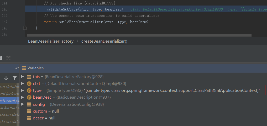 至此,整个调用过程就大致过了遍。简单地说,就是传入的需要被反序列化的org.springframework.context.support.ClassPathXmlApplicationContext类,它的构造函数存在SpEL注入漏洞,进而导致可被利用来触发Jackson反序列化漏洞。