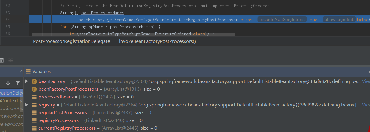 invokeBeanFactoryPostProcessors:84, PostProcessorRegistrationDelegate (org.springframework.context.support)