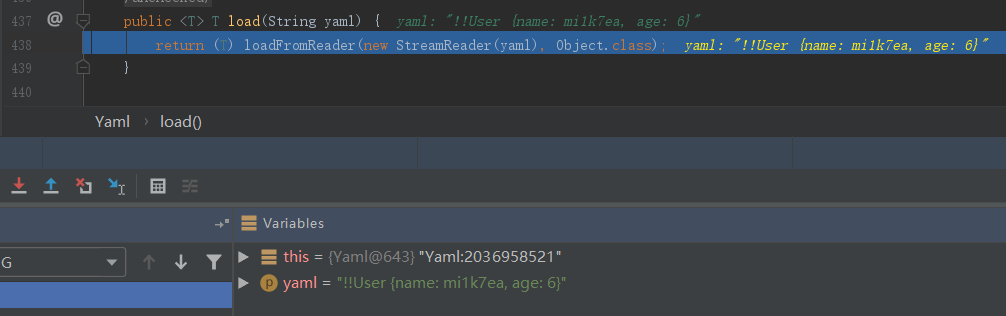 • Yaml.load():入参是一个字符串或者一个文件,经过序列化之后返回一个Java对象;