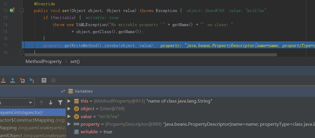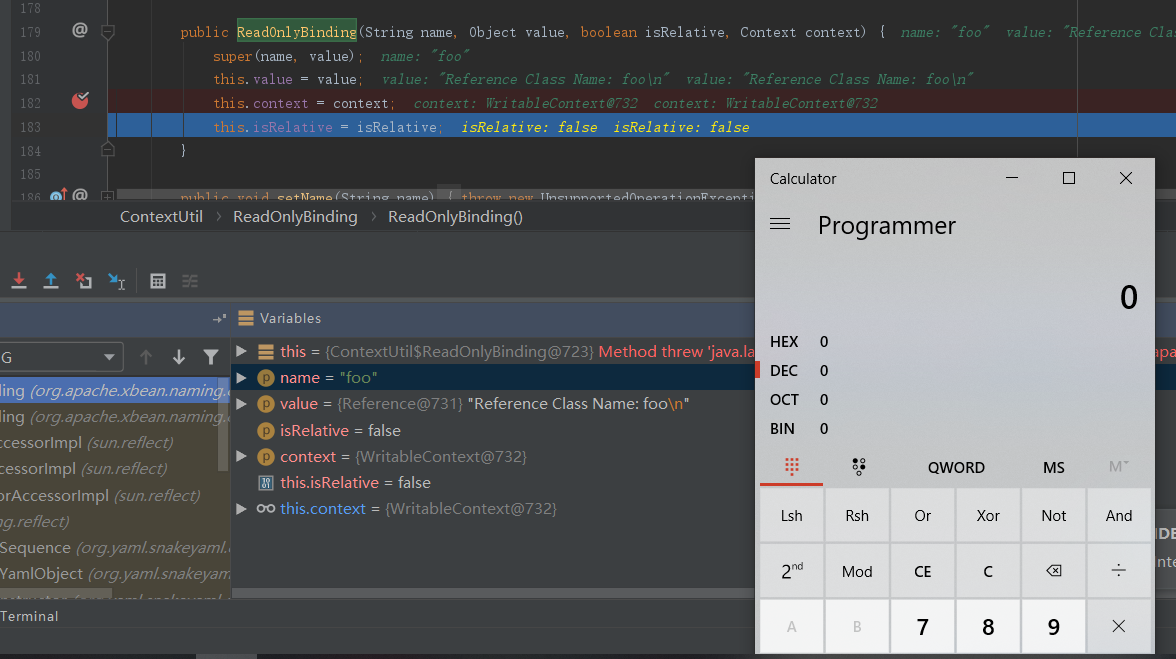 具体原理还没分析搞懂,之前简单调试下发现在调用ContextUtil$ReadOnlyBinding.ReadOnlyBinding()函数进行context属性的初始化为WritableContext类实例时会触发漏洞(后面有时间搞懂了再补充):
