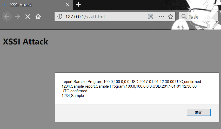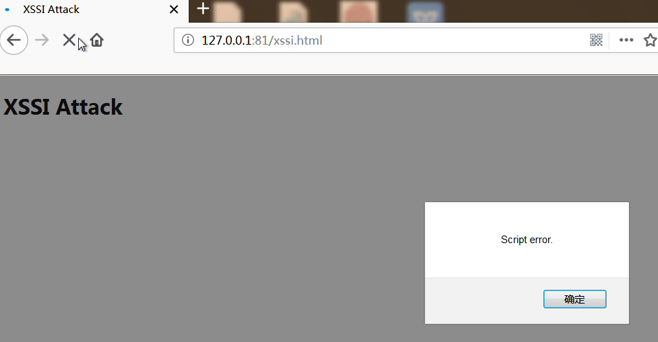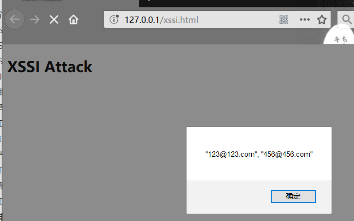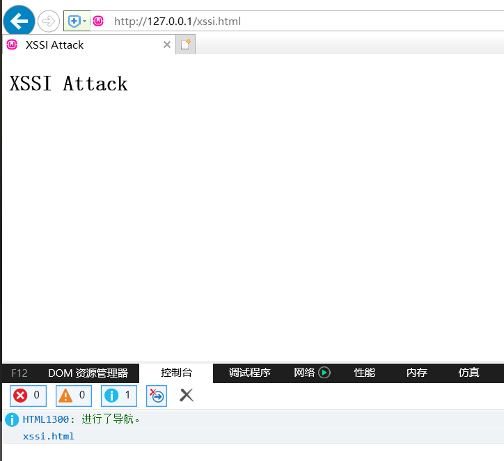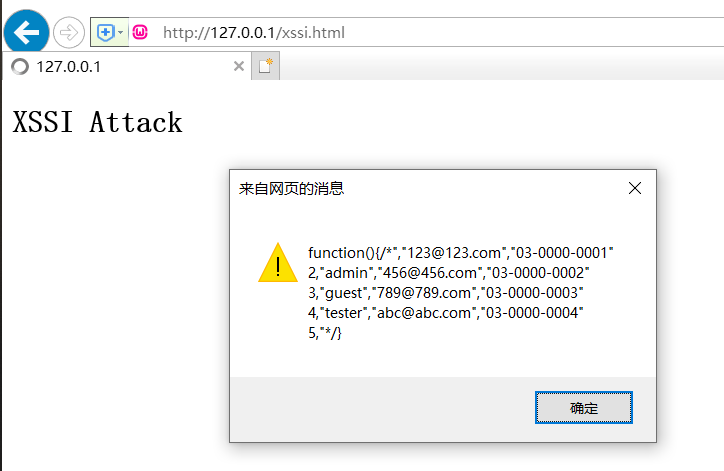 xssi.html,在script标签中加入charset=”UTF-16BE”,同时通过window.error来捕获错误信息并弹框显示出来: