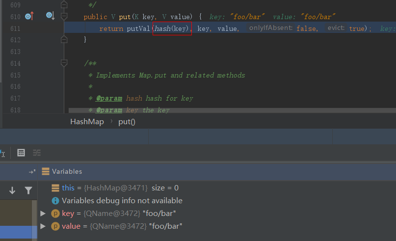 HashMap.put()函数中会调用hash(key)来计算对象的hash,然后再调用putVal()来设置HashMap的值: