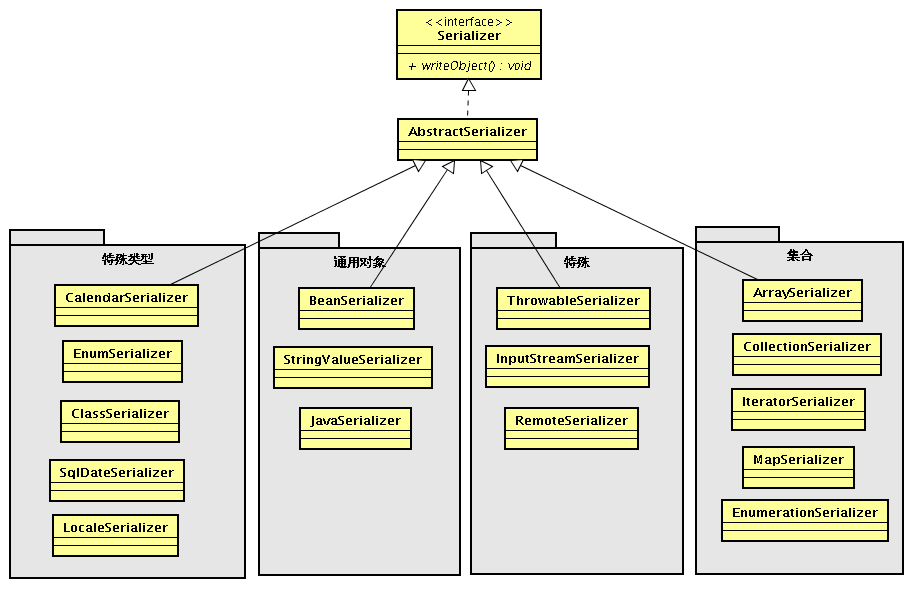 • Serializer:序列化的接口,拥有writeObject()方法。