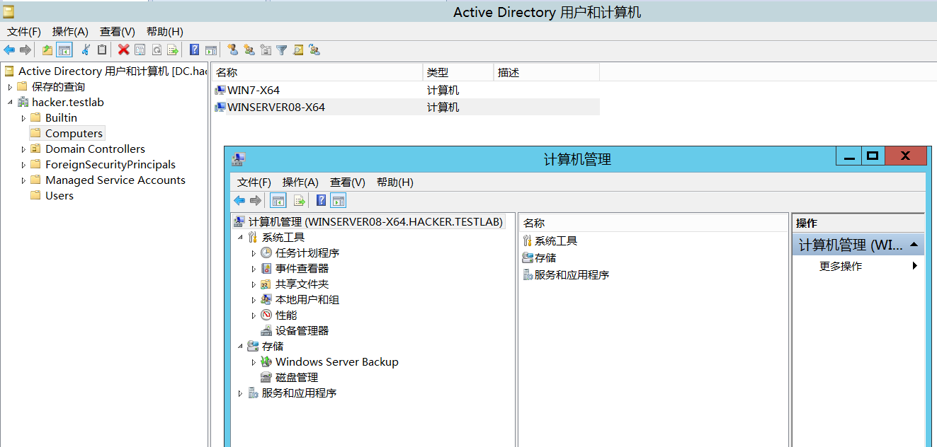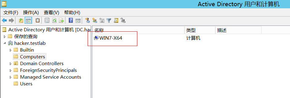 此时,我们在DC中“Active Directory 用户和计算机”页面的Computers项可以看到Win7加入的计算机名: