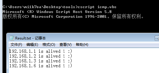 也可以使用VBS脚本进行探测,icmp.vbs: