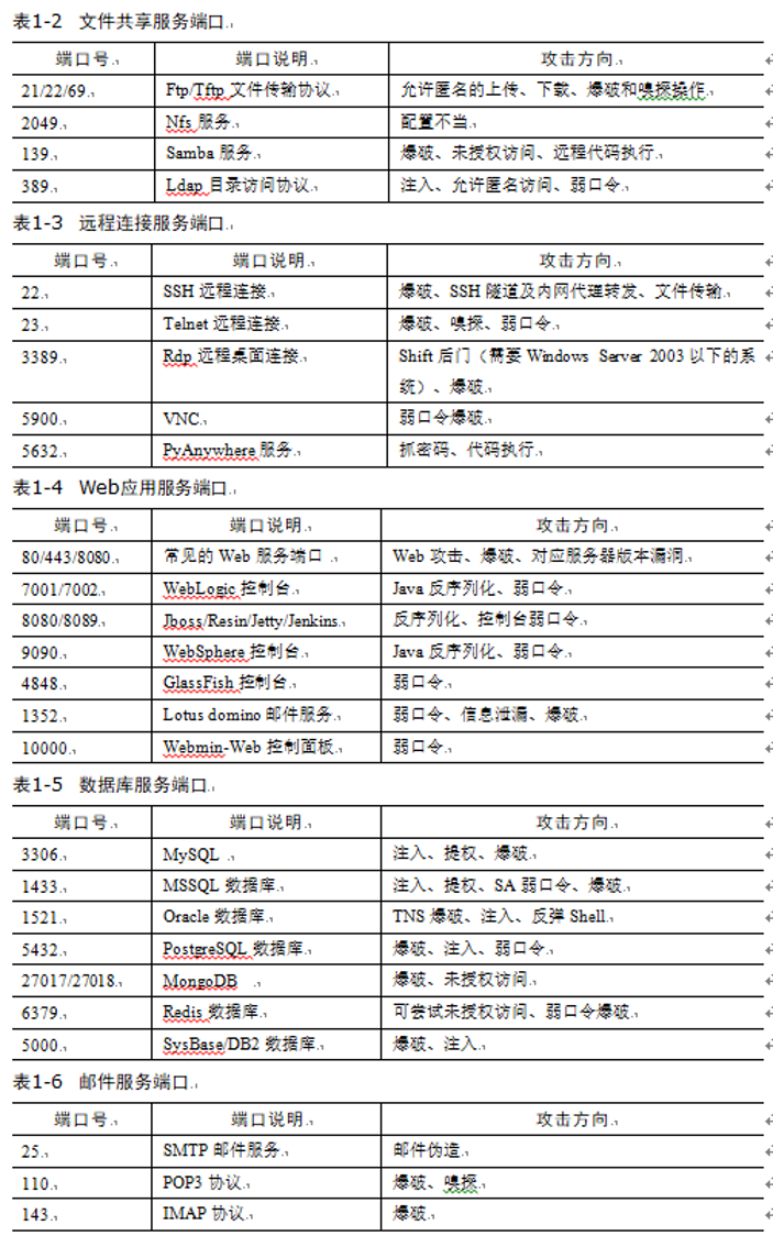 - 常见服务的默认端口号;