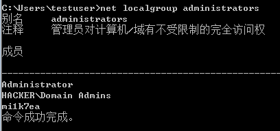 执行后看到本地管理员组存在两个用户和一个组: