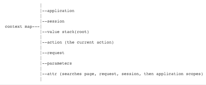 | request | request.getAttribute(“userName”) | #request.userName | ${requestScope.username} |