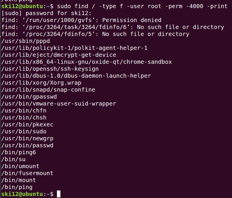 1 | find / -type f -user root -perm -4000 -print |