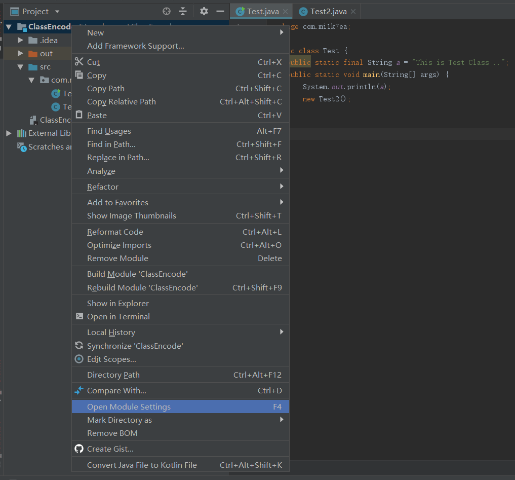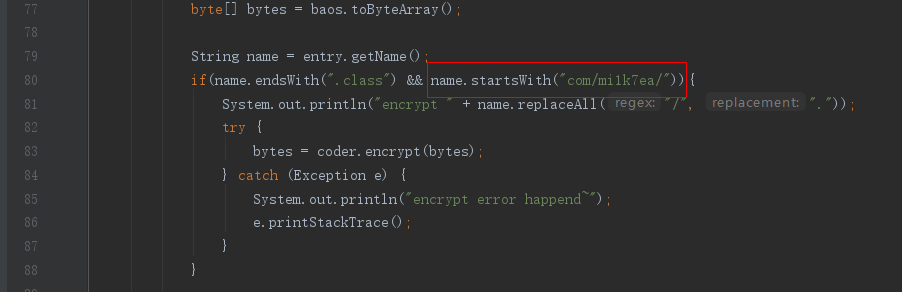 打开Encrypt.java文件,修改需要进行加密的类为以”com.mi1k7ea”开头的包下的所有类: