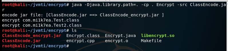 java -Djava.library.path=. -cp . Encrypt -src ClassEncode.jar