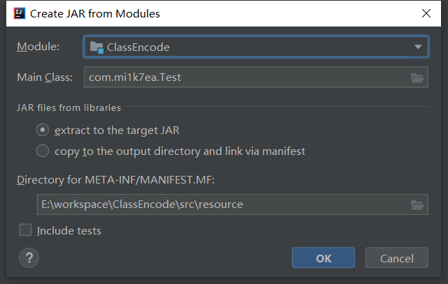 java -Ddump_package=com.mi1k7ea -Ddump_out_folder=/tmp -agentlib:decrypt -javaagent:DumpClass.jar -jar ClassEncode_encrypt.jar