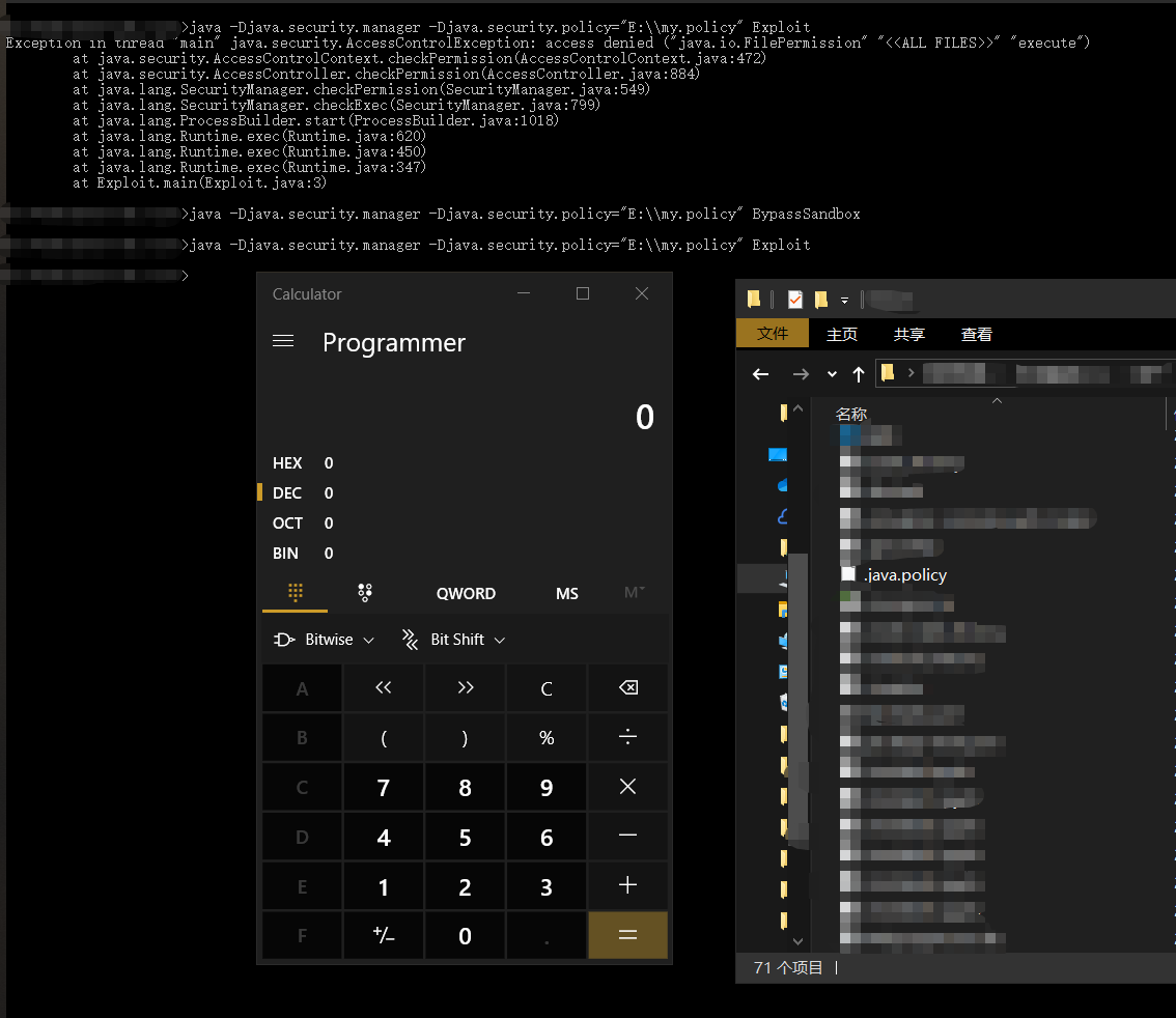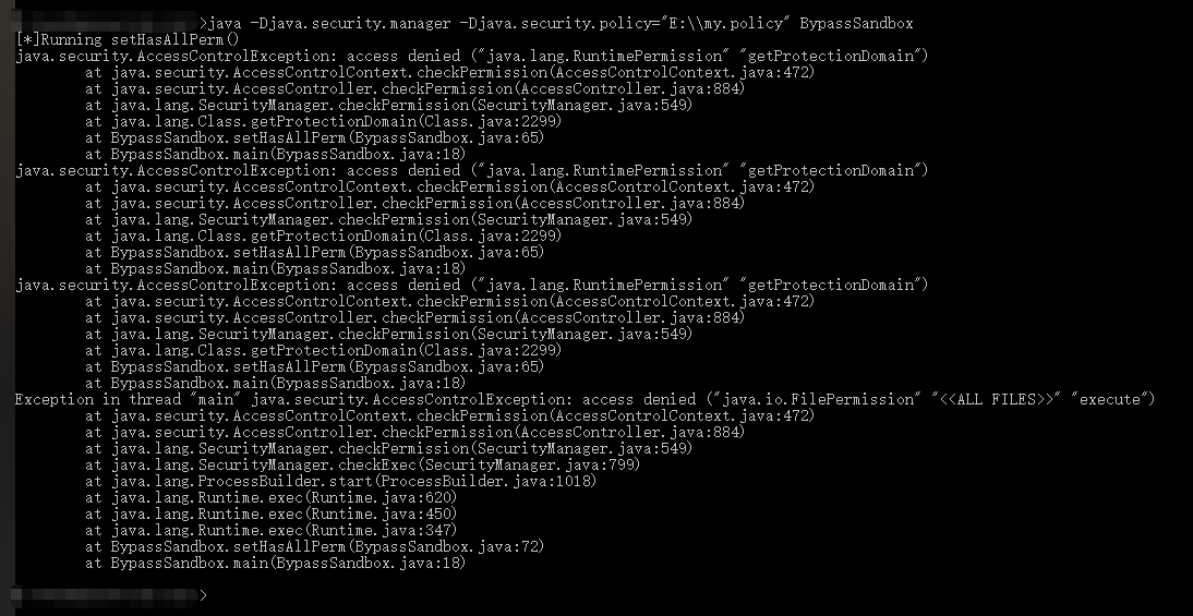 java -Djava.security.manager -Djava.security.policy=my.policy -jar exp.jar