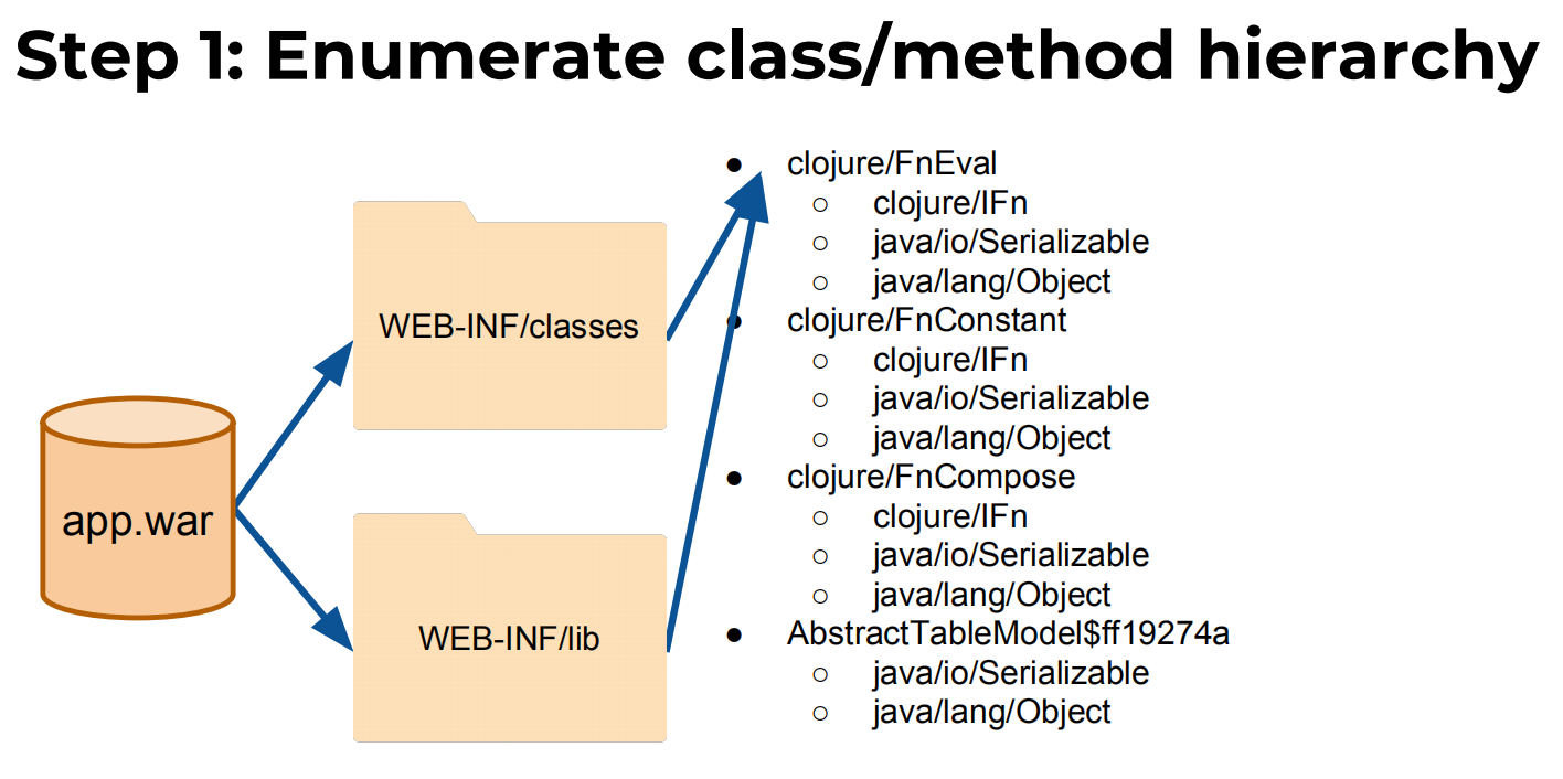 接着作者引出我们实际需要一个新工具,这个工具不需要自己生成payload,而是能够评估安全风险,即给定一个反序列化漏洞能否被攻击利用,有哪些利用方式比如RCE或DoS或SSRF。