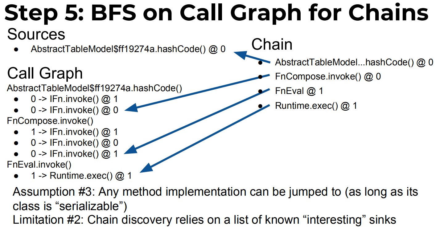 将发现的Gadget链作为方法调用序列进行报告;