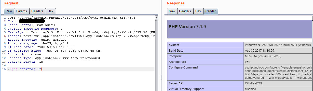 如果通过Composer安装的phpunit扩展的版本是漏洞版本,且vendor目录放在外部能访问的Web目录中,就存在phpunit远程代码执行漏洞。