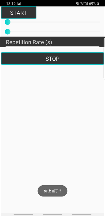 1 2 3 4 5 6 7 8 9 10 11 12 13 14 15 16 17 18 19 20 21 22 23 24 <FrameLayout android:layout_width ="wrap_content" android:layout_height ="wrap_content" > <Button android:id ="@+id/button" android:layout_width ="match_parent" android:layout_height ="match_parent" style ="@style/btnStyle" android:text ="premession" /> <Button android:id ="@+id/btnStart" style ="@style/btnStyle" android:layout_width ="137dp" android:layout_height ="wrap_content" android:onClick ="startTJService" android:text ="@string/strStart" android:alpha ="0" /> </FrameLayout >