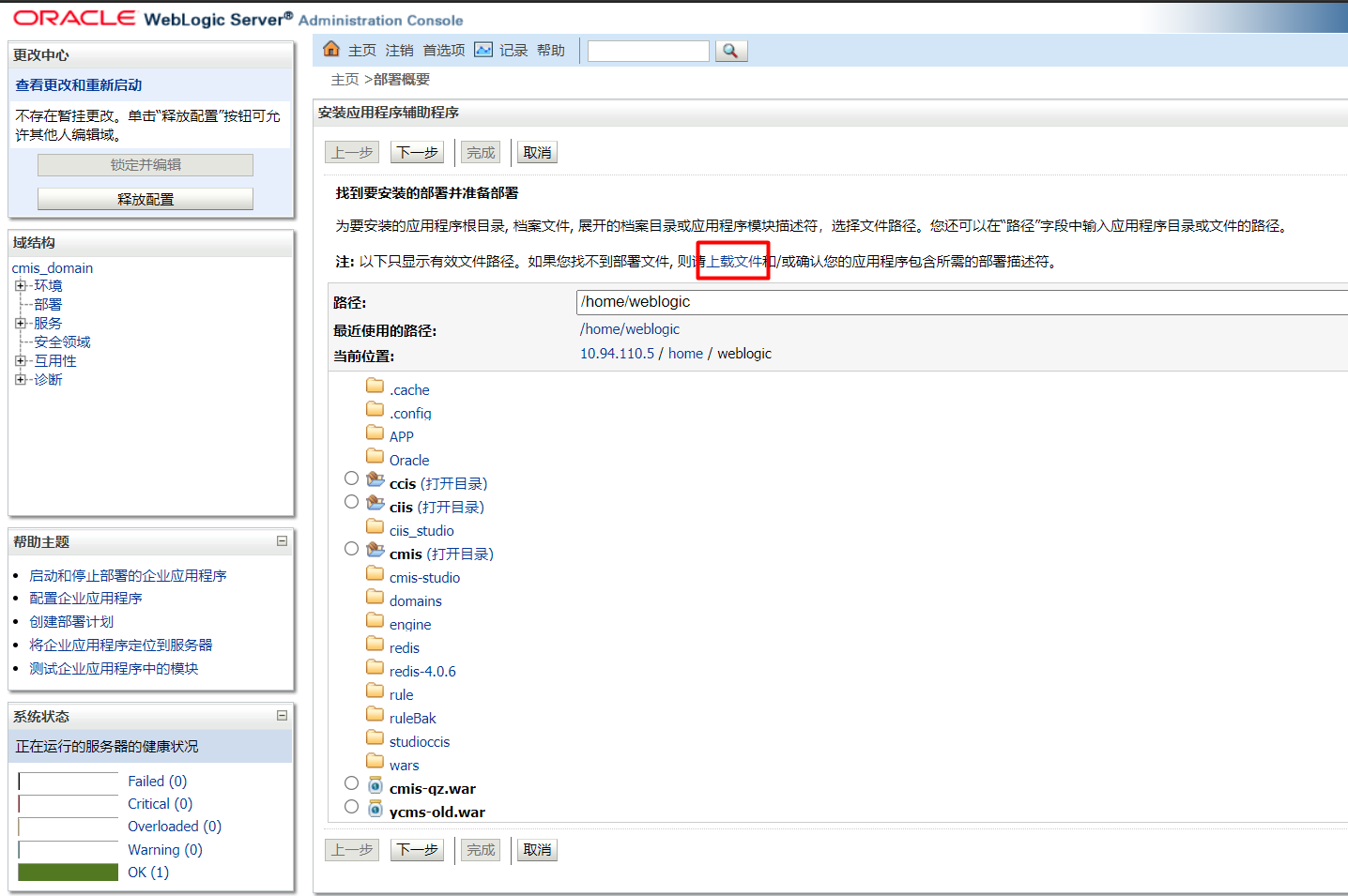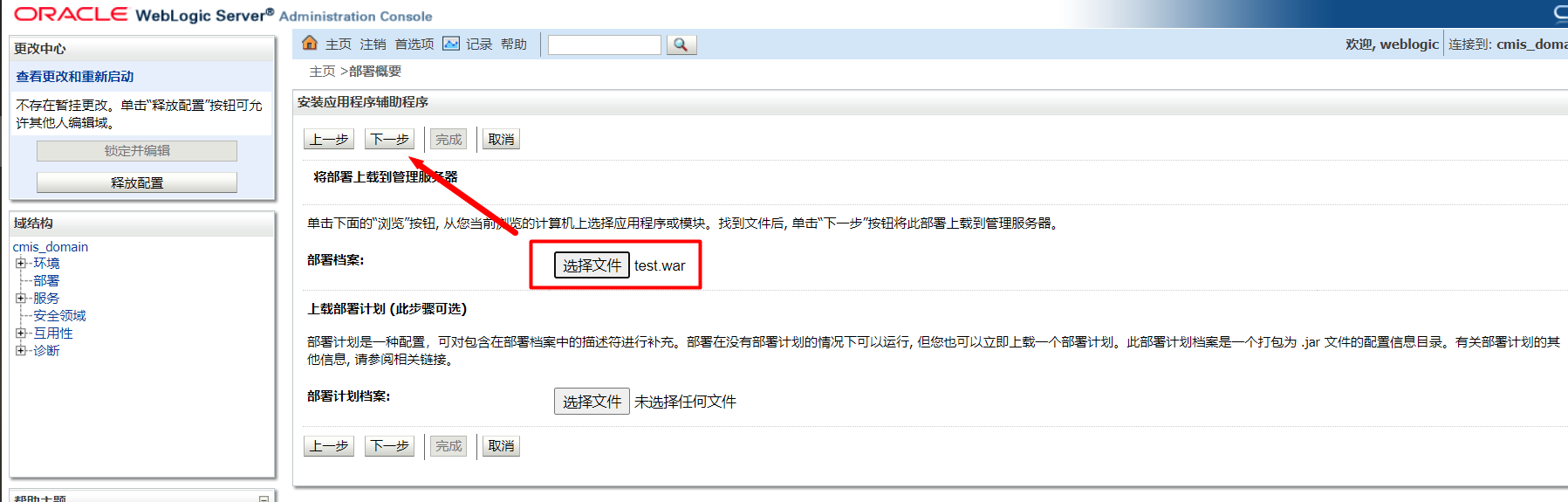 在部署档案中上传恶意WAR包文件后,点击位于上方的下一步: