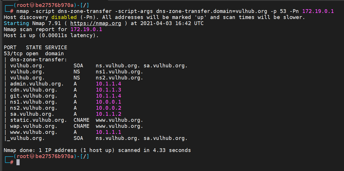 环境参考:https://vulhub.org/#/environments/dns/dns-zone-transfer/