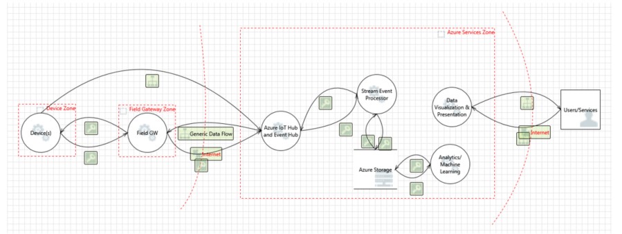 为了规范,是需要用到上面提到的Microsoft Threat Modeling Tool这个工具来描绘数据流图的,具体绘图细节这里不多说,看个网上的工具范例: