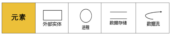 数据流图(Data Flow Diagrams)包含外部实体(External Entity)、处理过程(Process)、数据流(Data Flow)、数据存储(Data Store):