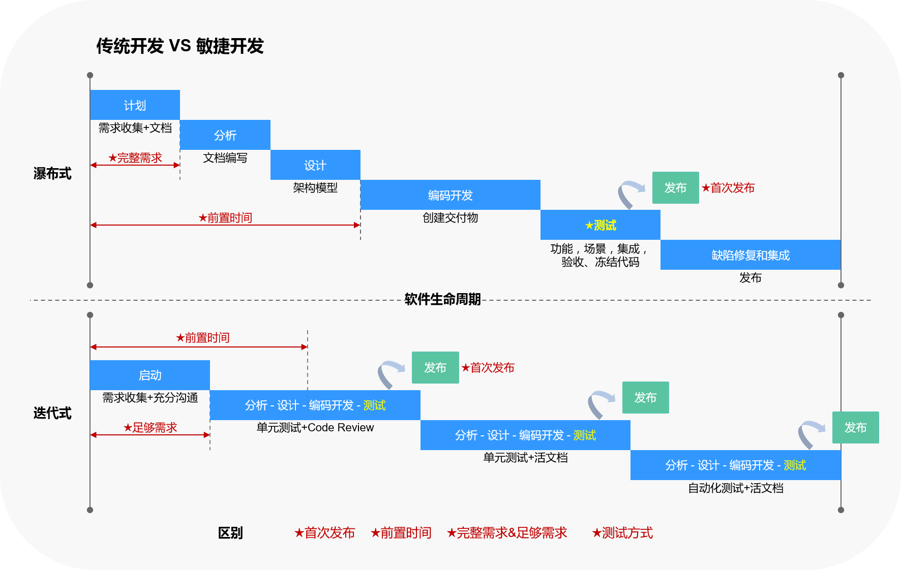 传统的瀑布模型是没法满足日新月异的业务需求变化的,此时就出现了敏捷开发模型。