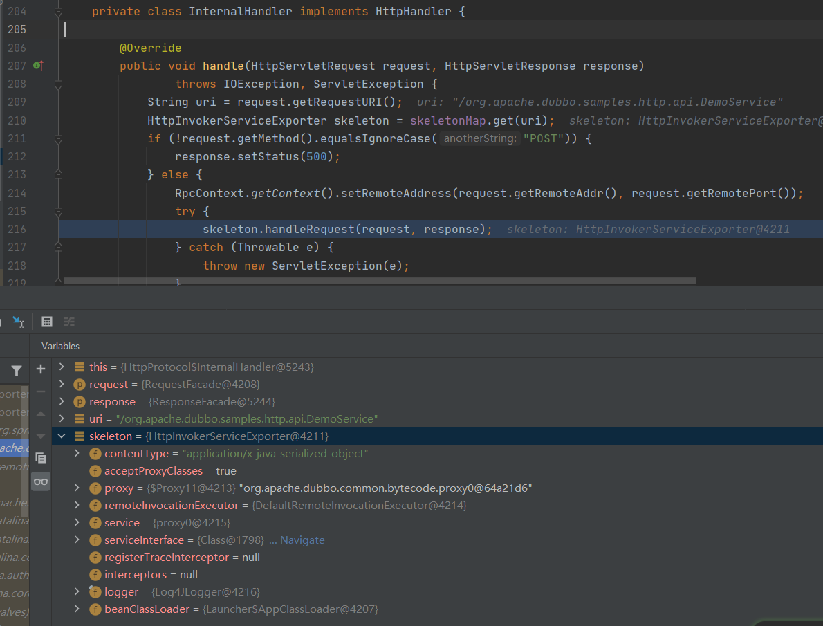 handle:216, HttpProtocol$InternalHandler (org.apache.dubbo.rpc.protocol.http)