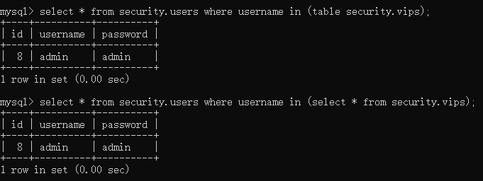 TABLE可以替换UNION SELECT结构,也可以和SELECT交叉使用,注意两个table的列数必须相同: